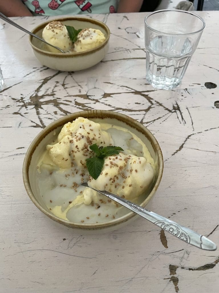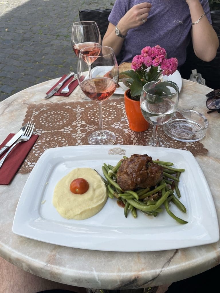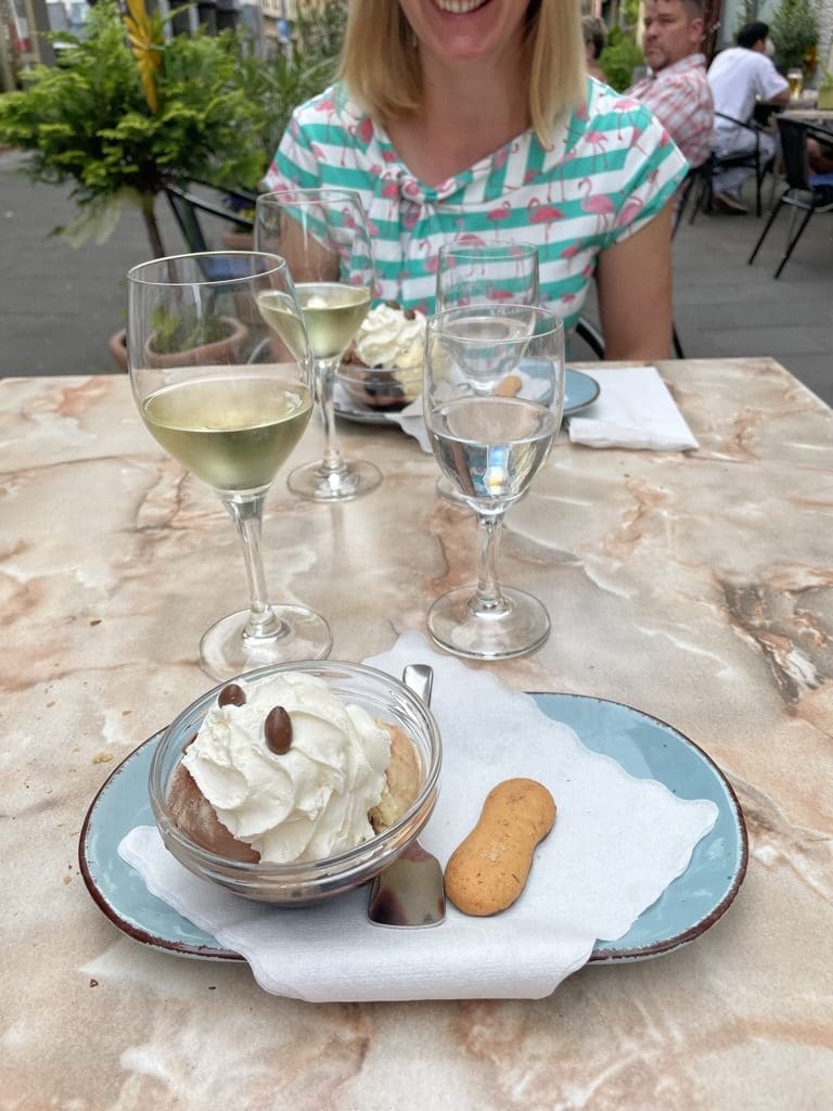 Two of the hotels had rented out the half board to nearby restaurants and they both served a good but simple Italian menu which suited our starved taste buds perfectly. A funny episode unfolded when the waiter at one place mentioned several times that we would have a surprise for dessert. It turned out to be ice cream with cream. 🙂