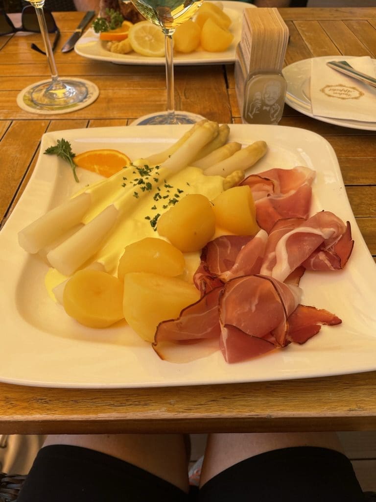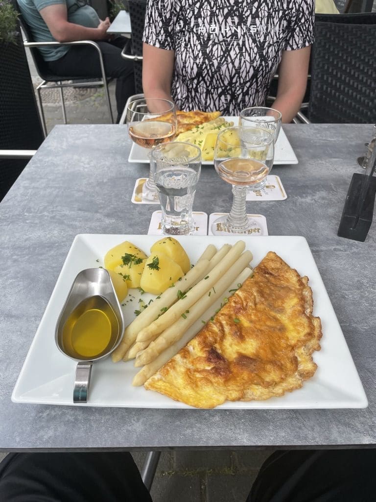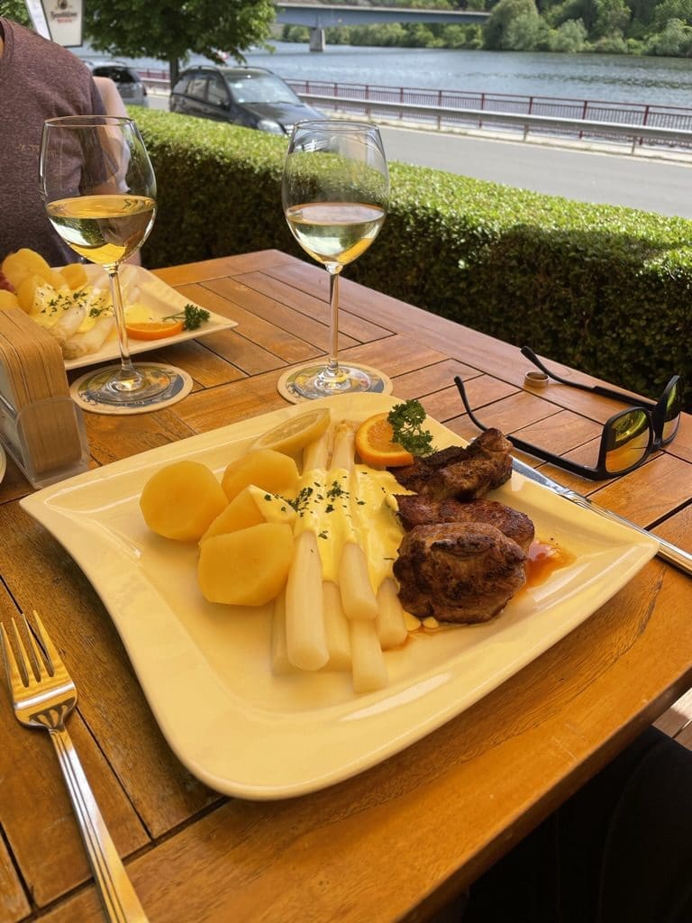 It just so happened that we cycled through the Mosel in the middle of the asparagus premiere, which we saw as a stroke of luck. Unfortunately, the asparagus had received the same mild treatment as the other vegetables, so it had no trace of either texture or taste. Sad! 🙁