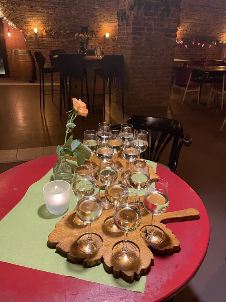 There was really no need for us as every little sausage kiosk had absolutely fantastic wine. It was offered for lunch, dinner and also some other occasions and each time so locally produced that you saw the cultivation during the day. As for the tastings, I would like to mention some of them as particularly successful. The first was organised by the winemaker who owned the hotel we stayed in. They had been growing wine for seven generations and he told us fascinating anecdotes that had also been passed down. He also had a very purist view of wine production where everything had to be done manually and referred disdainfully to the "new" winegrowers who used lots of machines and other modernities. 🙂